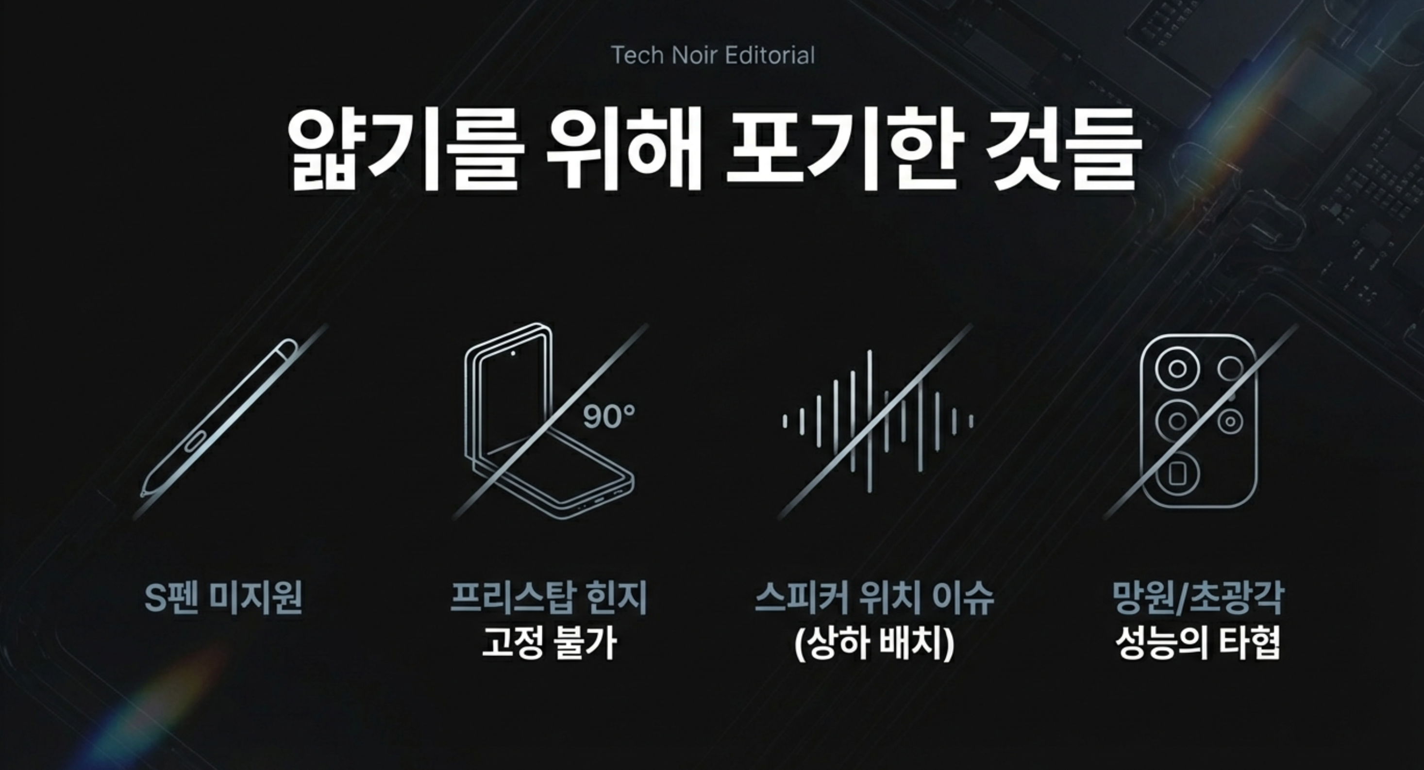 혁신적인 폼팩터를 얻기 위해 삼성은 기존 폴더블의 정체성을 과감히 포기하는 '등가교환'을 선택했습니다.