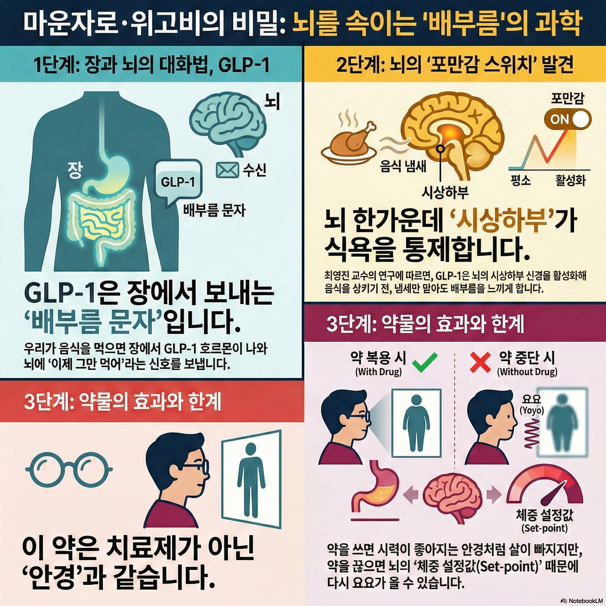 환자를 진료하던 임상의에서 비만 메커니즘을 파헤치는 연구자로 변신한 '의사 과학자(MD-PhD)' 최영진 박사는 비만을 단순히 외모의 문제가 아닌 '생존'의 문제로 규정합니다. 심혈관 및 뇌혈관 질환 등 현대인을 위협하는 치명적인 질병의 중심에 비만이 있기 때문입니다. 이제 우리는 이 혁신적인 약물이 우리 몸속에서 어떤 마법을 부리는지, 그 이면의 과학을 들여다봐야 합니다.